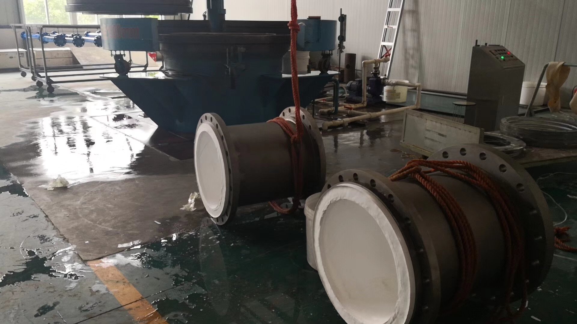 生產(chǎn)加工產(chǎn)聚四氟乙烯管、襯氟鋼管和襯四氟管件、鋼襯ETFE(F40)塔節(jié)、襯四氟容器、襯四氟設(shè)備,四氟滾涂管道、四氟噴涂設(shè)備、四氟模壓管道、四氟板襯儲(chǔ)罐、鋼襯復(fù)合管道、鋼襯PO管道,襯氟鋼管和襯四氟管件、鋼襯ETFE(F40)塔節(jié)、襯四氟容器、襯四氟設(shè)備,擁有完整、科學(xué)的質(zhì)量管理體系。 公司懷著無(wú)比虔誠(chéng)的心,攜著雄厚的技術(shù)力量與豐富的加工制作經(jīng)驗(yàn),竭誠(chéng)為新老客戶提供全優(yōu)的服務(wù)。鋼襯四氟儲(chǔ)罐也叫鋼襯PTFE儲(chǔ)罐,襯氟儲(chǔ)罐,主要是在碳鋼或者不銹鋼儲(chǔ)罐內(nèi)襯四氟材質(zhì)。主要工藝流程是鋼體噴砂—除灰—晾干—檢查有無(wú)氣孔—刷膠—貼板—焊接—檢驗(yàn)—出廠。有多臺(tái)不同規(guī)格的熱滾襯ETFE(F40)雙軸線旋轉(zhuǎn)成型燒結(jié)爐,生產(chǎn)塔設(shè)備、反應(yīng)器、反應(yīng)釜、罐類容器、襯四氟管道、襯四氟管件、泵體及各種形狀復(fù)雜的零件進(jìn)行襯氟加工。ETFE(F40)和鋼體有很好的附著力,襯氟設(shè)備耐真空、耐負(fù)壓,產(chǎn)品質(zhì)量達(dá)到了國(guó)內(nèi)先進(jìn)水平。 使用優(yōu)質(zhì)原料生產(chǎn)聚四氟乙烯管,規(guī)格為DN25~400,品種多,規(guī)格全。四氟儲(chǔ)罐內(nèi)襯材料PTFE(聚四氟乙烯)耐腐蝕性強(qiáng)、力學(xué)性能和超過(guò)所有的通用塑料,有永不老化的特性,表面光潔與光滑,抗壓性能也是優(yōu)于其他塑料。主要用于化工設(shè)備的襯里,和高溫環(huán)境下化工設(shè)備及配件,耐摩擦零部件等。襯四氟儲(chǔ)罐,襯四氟管道產(chǎn)品可廣泛應(yīng)用于化工、氯堿、海水淡化、印染、顏料、儲(chǔ)運(yùn)、電廠、稀土、冶金、電子、環(huán)保、制藥、釀造等行業(yè)。